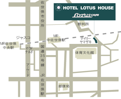 ホテルロータスハウス 〒 857-0805 長崎県佐世保市光月町8-17 Tel: 0956-24-5555 FAX: 0956-24-5556